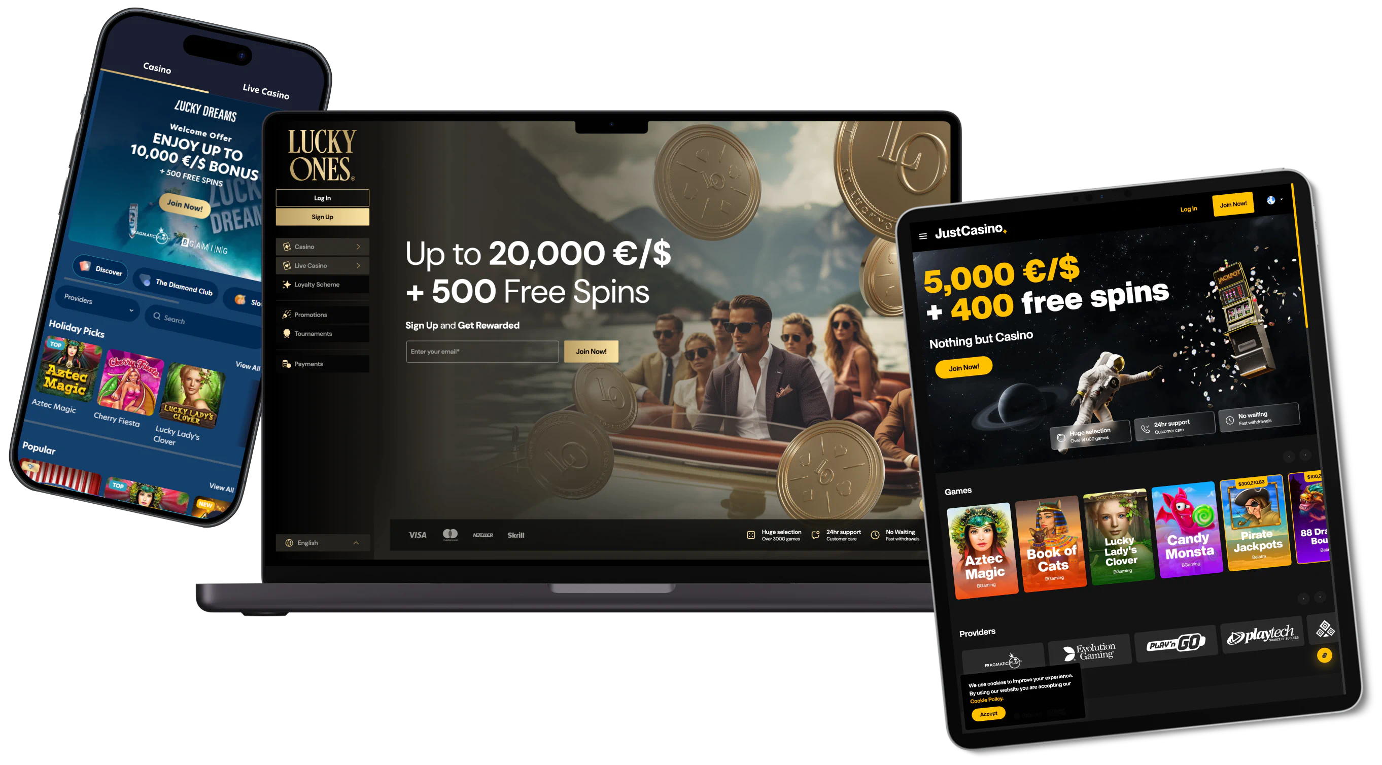 Each brand comes complete with its own unique identity to help it stand out from the others, and more importantly the competition. Put your feet up in the paradise that is LuckyDreams, perhaps indulge in the high-end luxury of Lucky Ones, or even launch your casino experience into outer space in JustCasino or JustCasino Crypto